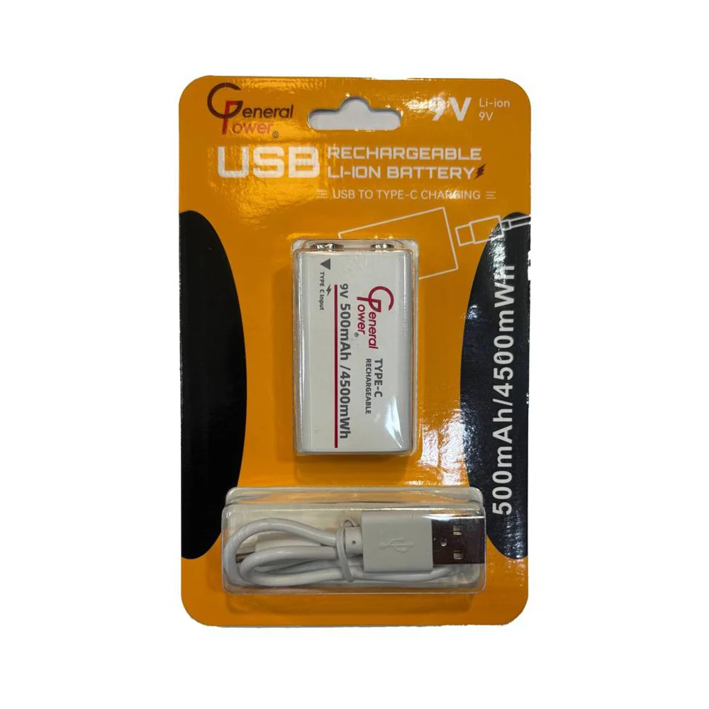 باتری کتابی شارژی 9 ولت جنرال پاور با کابل تایپ سی